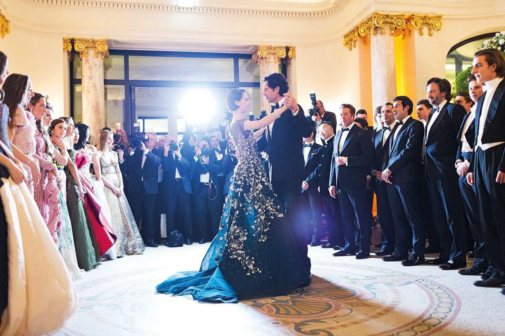 2016年底举行的巴黎元媛舞会,其中一位元媛与舞伴翩翩起舞。