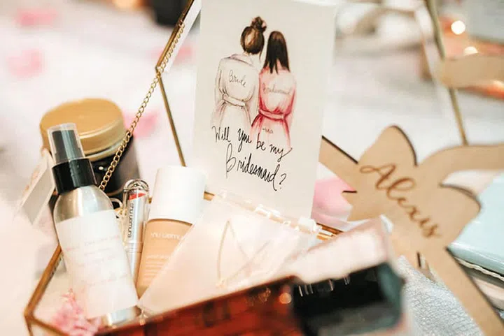 Cheryl特别为伴娘好姐妹们精心准备的礼物,并附上亲手写的卡片。