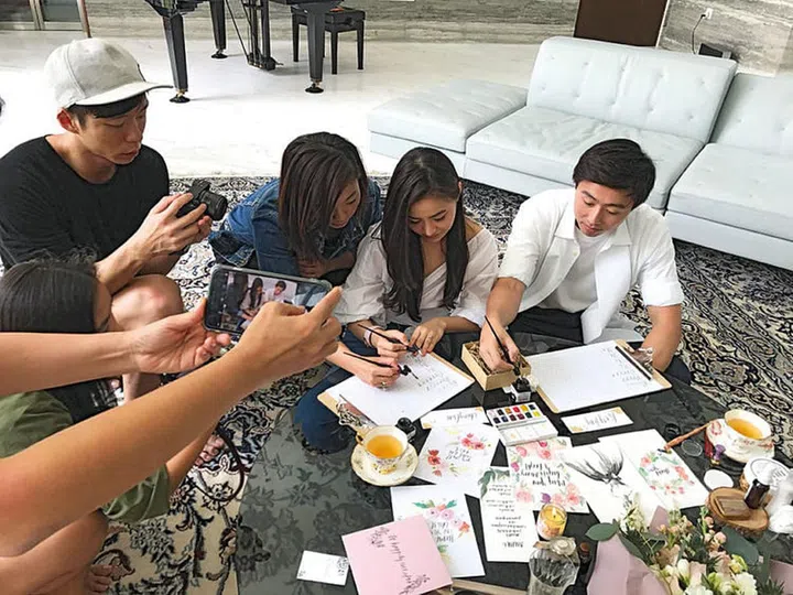 Cheryl和Roy 认真练习手写字体,要亲自手写邀请卡以表诚意。