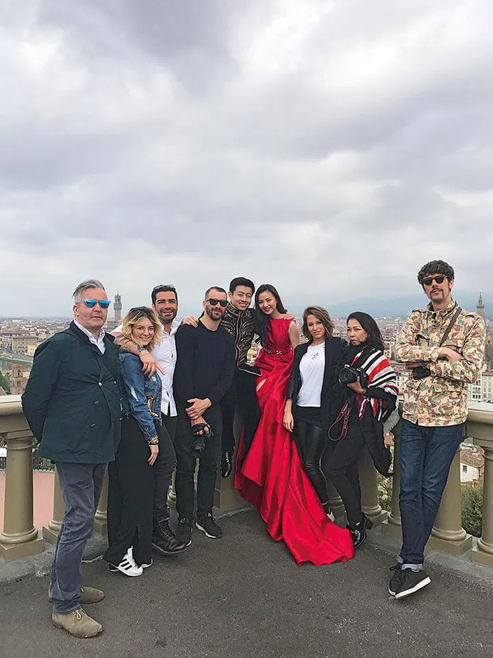 国际知名摄影师Pier Nicola Bruno为Cheryl和Roy拍摄婚纱大片,期间团队与一对新人合影留念。