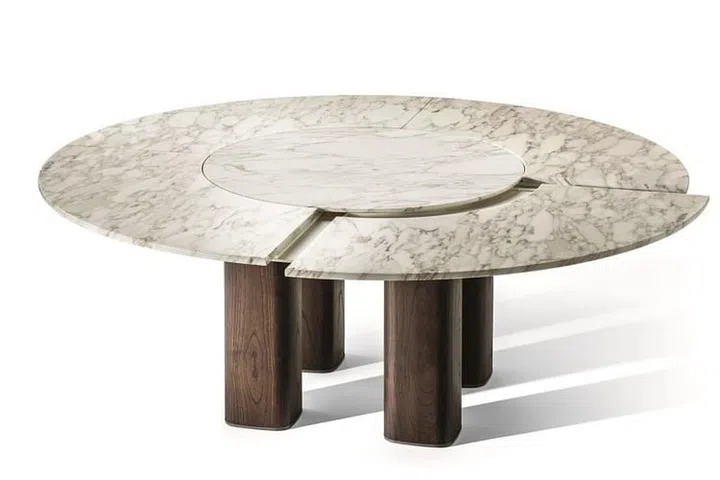 今年迎来60大庆的Minotti,作品益发重视生活的小确幸,品牌请来Nendo设计的Ring茶几,圆形大理石桌面下出现单一圆环桌脚,不按牌理出牌,但有趣。 Werner Aisslinger为Dedon设计的CIRQL系列户外家具,将几个圆环进行拼组,结合独家编织材料与技术制成椅子和茶几,让人感觉幸福满点。Jean-Marie Massaud为Poliform设计的Nara圆形桌凳系列,造型可爱。Riccardo Gussoni以复活岛的史前雕像为灵感,为MisuraEeme创作了Moai茶几,并漆上古铜色,精巧而隽永。
