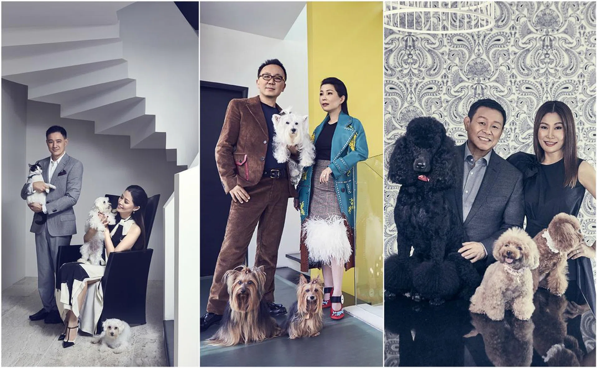 Elaine:Tin Tin是我们第一只狗,今年10岁,也是我心中最完美、最忠心的狗。它温柔内向,总是被其他狗狗欺负。Miu Miu 8岁,属于西高地白梗犬 (West Highland Terrier),是三狗之中年纪最小的,也是最凶的,它常欺负Tin Tin,但是它是爸爸(陈国荣)的心肝宝。Enzo小名Zo Zo,跟Tin Tin一样属于约克夏(Yorkie),我们5年前领养了它。一对美国夫妻回国之前把狗留在宠物美容院,店长问我们要不要把它领养回去。我跟我爸爸先去探望它,他立刻就爱上了它;接着我们带 Tin Tin和Miu Miu 一起过去,看看它们能否融洽相处。经过兽医检查确保它是健康的,我们就把它领养回家了。我们不知道它几岁,兽医根据它的牙齿和骨头推测它大约九岁。它是友谊先生,很友善,喜欢亲吻每个人,是公公的新头好。饿了,它就会走到佣人面前吠一下;看到我的车子驶进来,它也会走到厨房对佣人吠,通知她们开门给我。