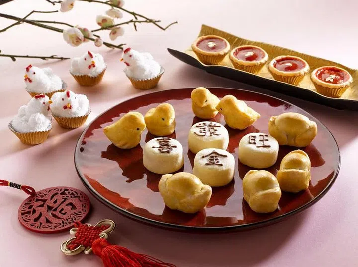 除了生动的“公鸡”鱼生,还有可爱的“小鸡”甜点,即陶喜鸡仔酥和巧心棉花糕。