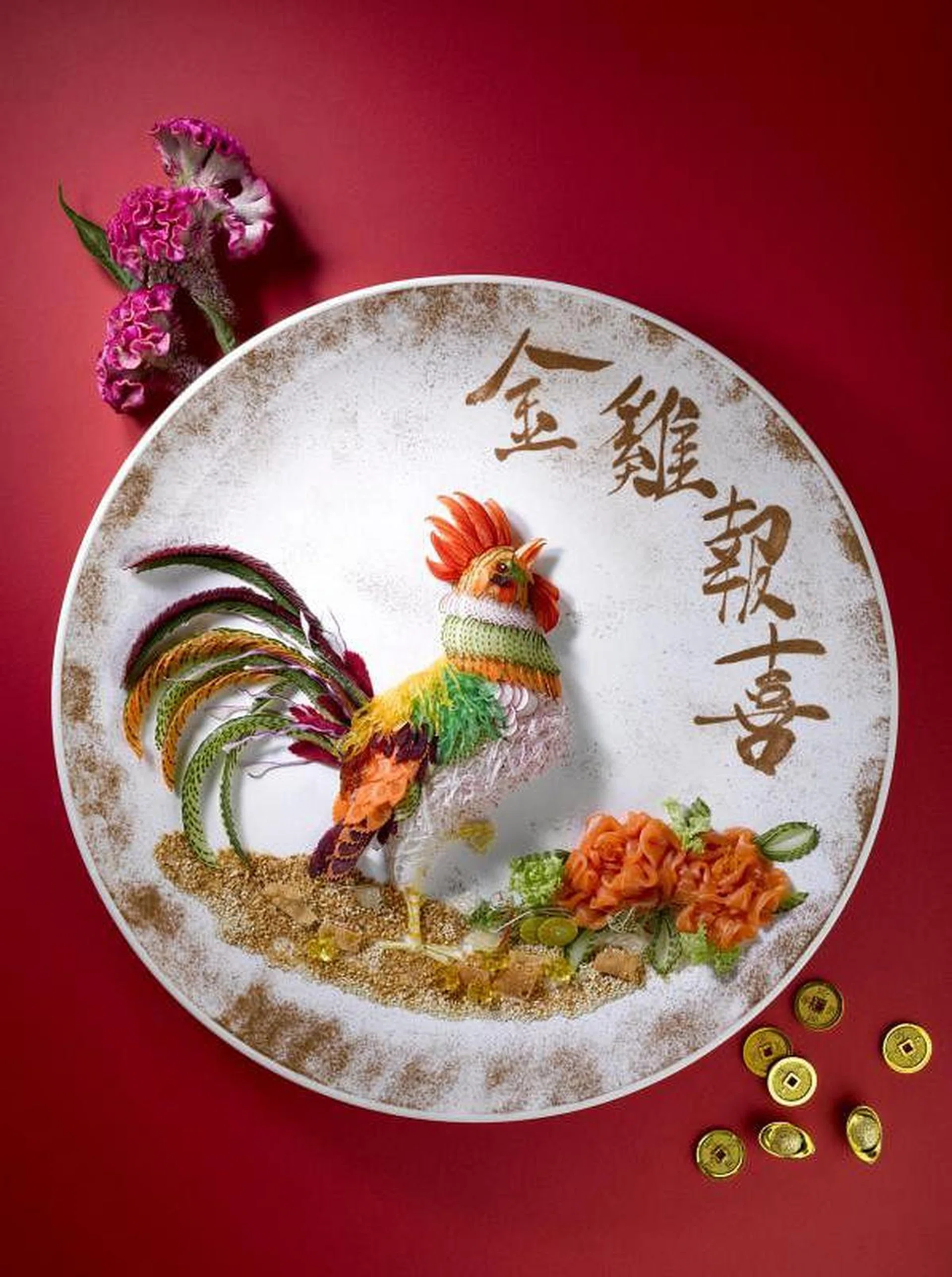 迎接丁酉鸡年,本地许多厨师摇身变为艺术家,以鱼生为媒介,挥洒出一幅幅美观又美味的生动作品。