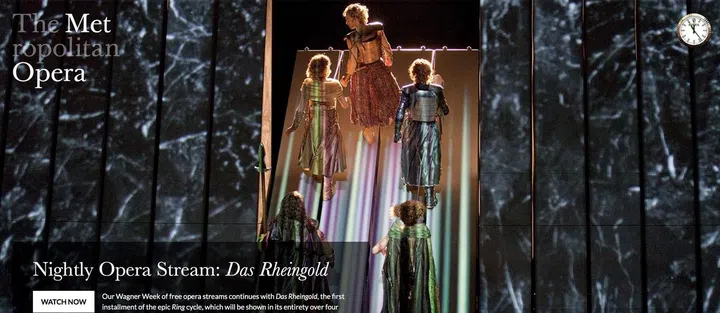 纽约大都会歌剧院(The Metropolitan Opera)从3月16日至29日,每天当地时间730傍晚在开放线上放映,每天都会播放一部过去14年来歌剧院制作的经典作品,包括《卡门》等。播放之后会在线上保留20小时。