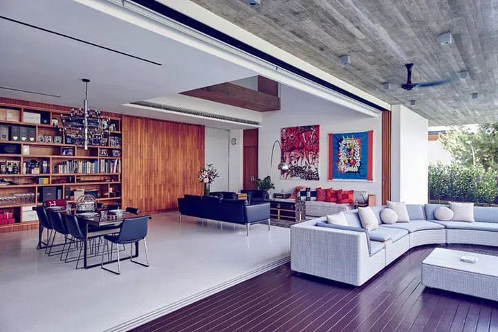 只要把客厅和庭院之间的玻璃门拉开,就能把室内户外藩篱消除;一气呵成的设计,让人如置身海岛度假屋。 Andrew一家五口在五个月前搬入新宅。