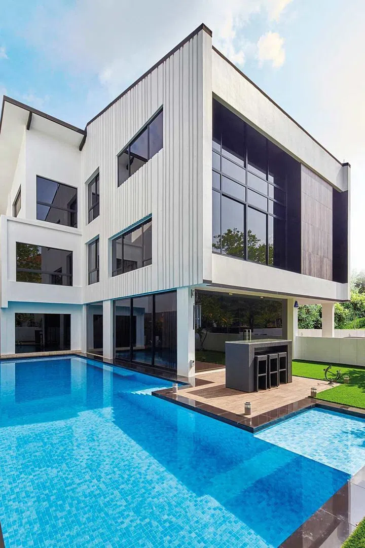 这栋三层楼高豪宅的外观设计大方,反映屋主崇尚简约自然的设计风格。
