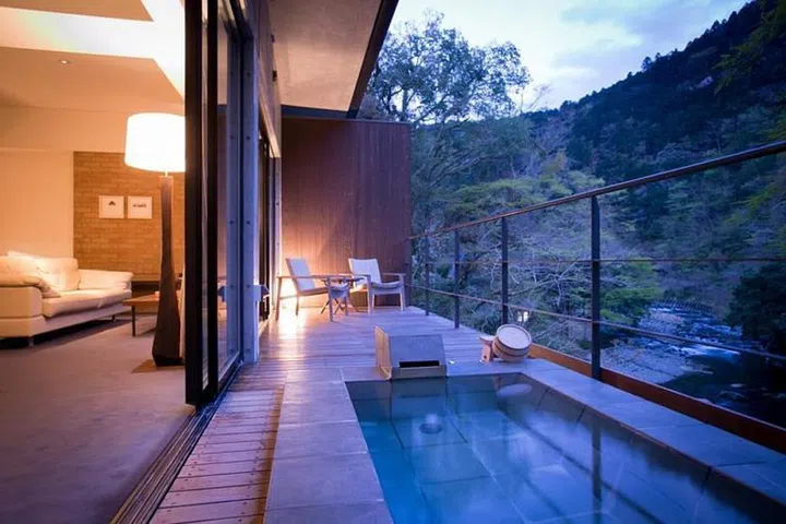 位于狩野川畔的高级温泉旅馆,走简洁欧风设计路线,全馆仅16间客房,私密性高。旅馆被原始森林景观围绕,让访客沉浸在疗愈的森林浴中,为身心充电的最佳场所。