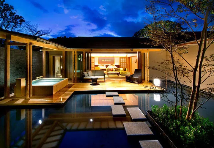 除了设有24小时露天风吕,每间客房也附设个人室外温泉,让住客随时享受在自然山林间泡汤的乐趣。旅馆也设有酒吧、Spa中心和精品店等设施,餐厅则提供法式和风精致料理,菜菜式随季节变化。arcanaresorts.com/en/
