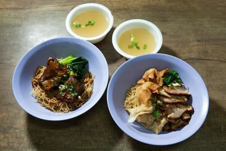 美记云吞面的松露卤肉软骨面(左)和松露云吞面,成功提升味蕾体验。(蔡家增摄)