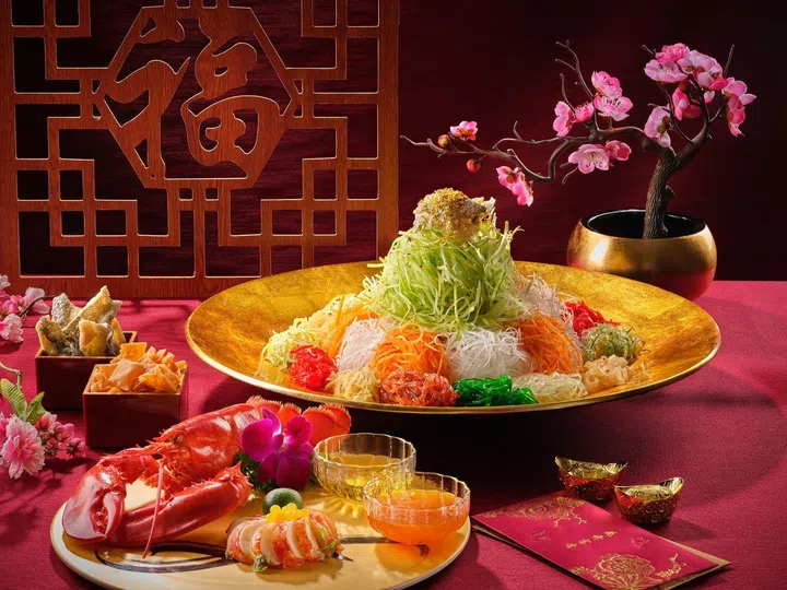 莱佛士酒店(Raffles Hotel)中餐馆藝(yì by Jereme Leung)的Prosperity鱼生除了有金枪鱼刺身,还加入了鱼生中较少见的材料:西班牙伊贝里科火腿和蜜瓜,发挥餐馆中西合璧的烹饪理念,为这道传统年菜增添亮点。由名厨Jereme Leung特制的招牌云南玫瑰佐料取代传统酸梅酱汁,多了分甜蜜惊喜。另,酒店也推出主打北极贝类和日本甜虾等优质食材的Longevity鱼生,同样搭配招牌云南玫瑰酱。供堂食或外带。