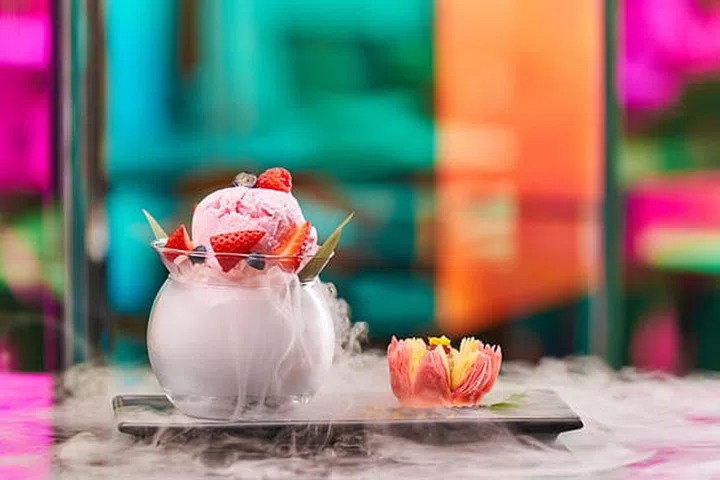 位于新加坡君乐酒店(Grand Park Orchard)4楼的Mitzo以卓越的鸡尾酒调制技术与新颖的方式呈现经典粤菜,融合传统与现代,重新定义中国传统美食。餐厅推出的情人节五道式套餐依旧主打摩登粤菜,亮点包括韩式芝士焗龙蝦(Korean-Style Cheese Baked Lobster)、和牛咸蛋粗米粉(Wagyu Beef with Salted Egg Vermicelli)。甜点方面,可期待清爽的鲜果玫瑰雪花拼莲花酥(Rose Syrup Granita topped with Mixed Berries served with Lotus Paste Puff),美丽呈现方式绝对能虏获女孩们的心。