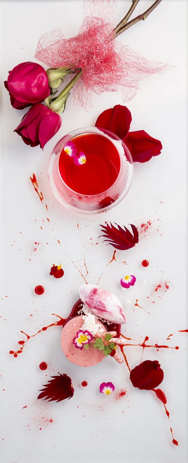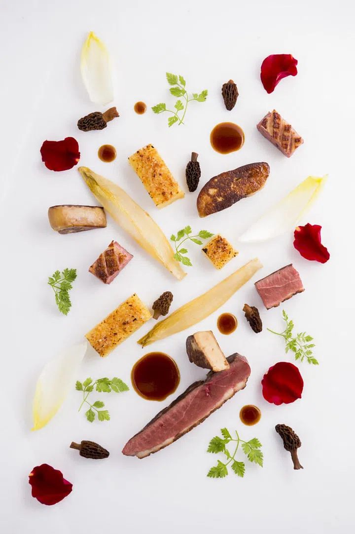 鸭胸肉配鹅肝,这样的味道一定要搭配La Chapelle du Pontansac Cabernet & Merlot Blend。而夜色完全袭来之时,荔枝树莓玫瑰巴伐露会将最美的情人节晚餐完美地消化。