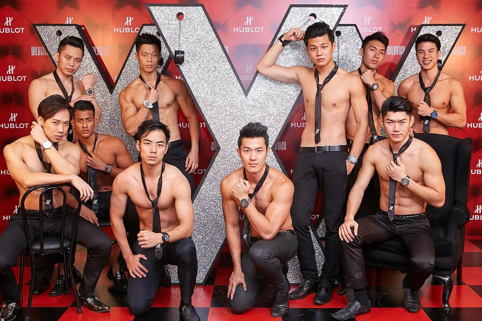 一步入会场就会看到场内的10个赤着上半身只结上一黑色领带的壮男 在人海中穿梭着。他们是腕表赞助商The Hour Glass 的Hublot腕表的Hublot Boys,除了穿戴着黑色的Hublot 领带,猛男手上也佩戴不同的Hublot Big Bang 腕表。当中有几位还是去年Manhunt大赛的参赛者。