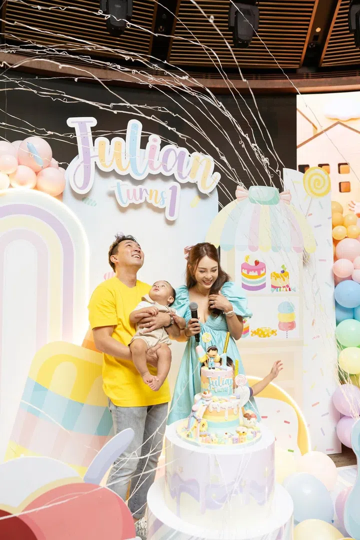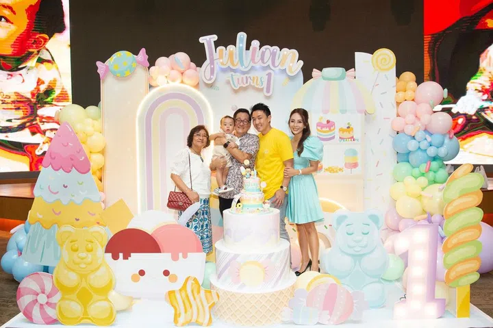 身为父母,都希望为孩子留下一个难忘的生日回忆。本地银行家Wang Wan Ting和丈夫Andy Lim在新加坡嘉佩乐酒店为一岁爱儿Julian举办生日派对,将宴会厅打造成了一个梦幻缤纷的糖果乐园。