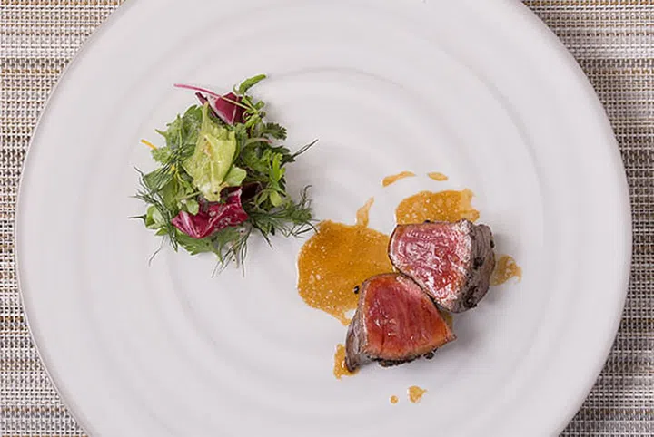 这间法式餐馆与苏豪区的风格如出一辙,环境优雅舒适。英籍主厨Daniel Calvery曾先后于伦敦、纽约及巴黎的顶级餐厅效力,擅于烹调传统法国菜并给予崭新的演绎。餐厅选用有机农农作物食材,所作的菜式精致简约,尽显其熟练而精湛的烹调技巧。建筑师肖恩迪克斯设计的法国风格的木制室内装饰,餐厅昏黄的灯光,大理石的桌面搭配蓝白条纹餐巾,深蓝色皮革沙发。这些细节都做足了欧洲餐厅该有的模样。