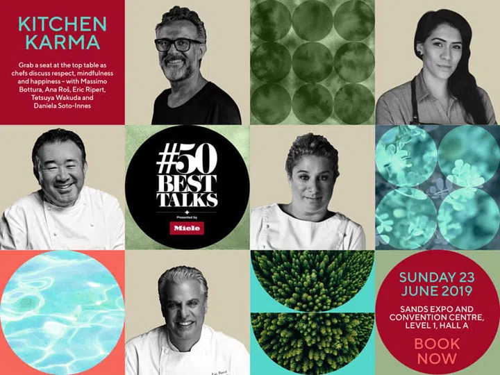 本届 #50BestTalks 话题将围绕“Kitchen Karma“,来自各地的名厨包括Massimo Bottura、Ana Ros、Eric Ripert、Tetsuya Wakuda和Daniela Soto-Innes难得齐集一堂,分享关于“尊重、正念和幸福”的概念,以及探讨烹饪界如今面临的关键问题。拥有丰富料理经验的大厨们将以亲身经历分析近年来所引发的“烹饪文化革命”,以及如何通过料理“滋养”人们的身心。90分钟的思维领袖论坛也会包括Q&A问答环节,让观众与这些烹饪界专业人士进行交流与互动,引发思维碰撞,绽放智慧火花。