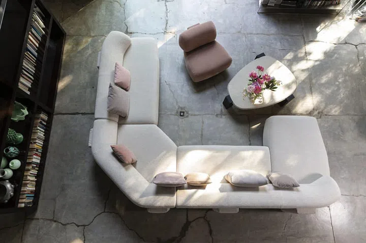 Patricia Urquiola汲取大自然之美,将这份巧思融入家具设计中,打造了Gogan沙发,其外形线条流畅,轮廓饱满,不花俏,没有一丝多余的装饰,一如被大自然精心雕琢过的岩石般,散发一股幽静洗炼的美感。设计师也通过精准的定位和互锁连接,来确保“石头”沙发的平衡,打造出宛如石雕艺术品的家具。此外,沙发的重心向后微倾,也让人坐上去非常舒适。椅座和沙发靠背之间,运用一个L型的支撑结构来连接,各个元素间的完美平衡,让这件原本份量感十足的沙发,看上去更显轻盈。