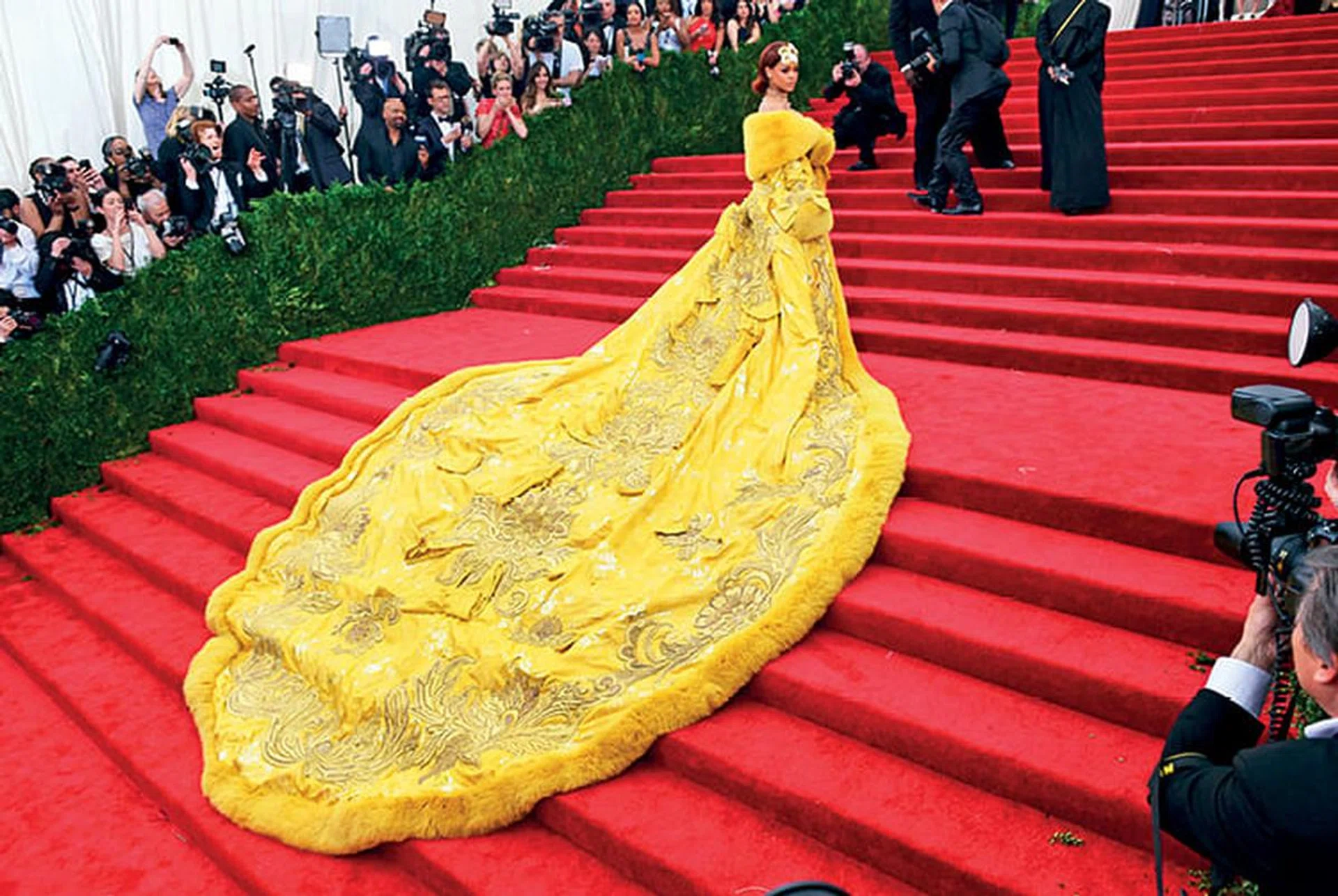 当时,Rihanna穿郭培设计的鲜黄色皮毛镶边长袍和披风登场,有趣的是,郭培之前没听说过Rihanna,当她听闻这位美国歌星要借衣服,第一个反应是:谁啊?