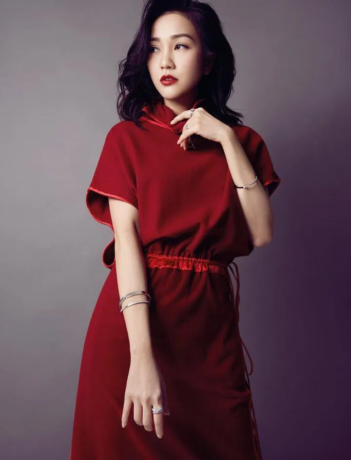 时尚: 丝质雪纺礼裙/Max Mara。 珠宝: Jeux de Liens系列18K玫瑰金镶嵌明亮式切割钻石长款项链,Liens Evidence系列18K玫瑰金镶嵌明亮式切割钻石长款项链,Liens Evidence系列18K玫瑰金陶瓷漆艺火红及翠绿镶嵌钻石手镯和戒指,Bee My Love系列18K白金、18K黄金镶嵌明亮式切割钻石戒指和单钻戒指/Chaumet。