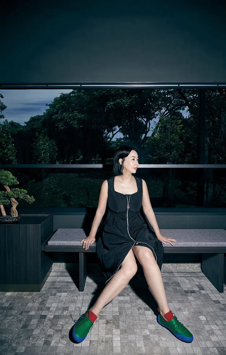 近期,Aimi 也开始穿起以前不会尝试的高端街头造型,比如宽松剪裁的上衣搭配运动鞋,展现更随性潇洒的穿搭风格。