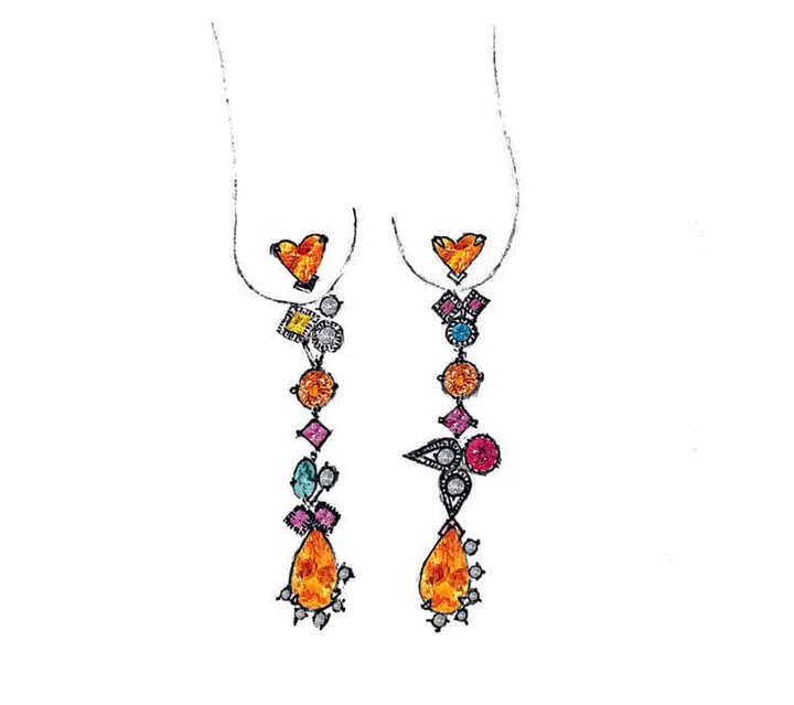 Jessie说自己并没刻意在家中设置独立办公角落或打造创作环境,甚至笑言已经快与客厅及房间的家具“融为一体”,走到何处画到何处。某次她一时兴起趴在地上画了许久,起身时腰疼无法站立,还因此去看了医生。“我其实很少在桌面上画图,一般都坐在沙发上、地上画。我觉得画图不一定要在某一个地方,等心情好、灵感来时,什么都可以,你根本不会意识到自己在何处,假如没灵感,我也不会强迫自己。”从她最爱观看的宝莱坞影集到儿子与她分享的时下流行歌曲MV,宅生活意外激发了她的创作灵感。无论何时,她都是乐在其中的。“设计珠宝对我来说是抒发情感的管道,是陶冶性情的嗜好,我不把它当作一份差事。”