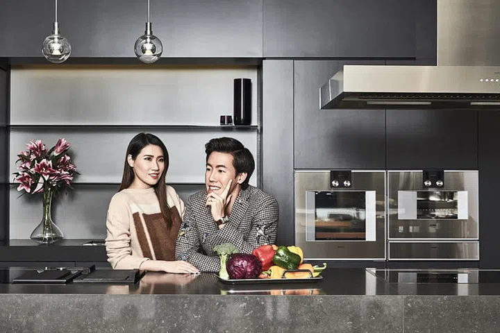 厨房,对于结婚刚满两年的李伟帆(Lee Wei Fan)与朱莉娅(Julia Bensily)而言,是日常生活中不可缺少的地方。小两口婚后搬进一间旧式公寓,家中需要进行大改造,而第一个装修的角落就是厨房。由于夫妻俩的身形较高,因此厨房的高度是根据欧洲标准量身定制,不同于新加坡普遍的标准高度。装潢之前,两人已知彼此都想要一个开放式厨房,里面有个吧台摆放饮品,还有个嵌入式烤箱让整个空间看起来简约却不失实用性。