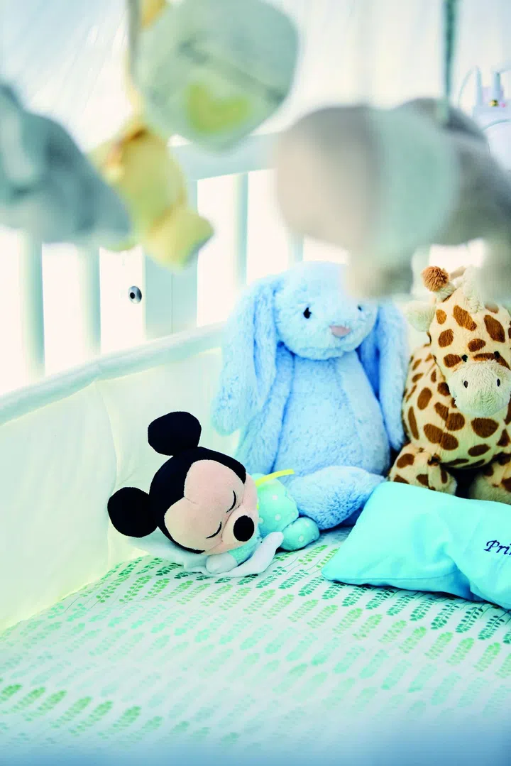 房间一隅,放置了一张舒服的沙发椅,“宝宝睡着后,我都会坐在这里陪伴他们。光是这样看着他们,心里就盈满幸福。”她笑称,自己也特别添购了一张爱马仕被子,让她陪伴孩子的同时也不着凉。婴儿床所面对的墙面则放置了数十个夫妻俩多年来的珍藏水滴娃娃瓷偶(Precious moments),其中不少限量版,甚至还有创办人的签名,异常珍贵,夫妻让这些可爱的瓷娃娃陪着孩子。Lucas 与Leia带着父母的宠爱和期望,犹如童话中的王子与公主般,幸福快乐的成长。