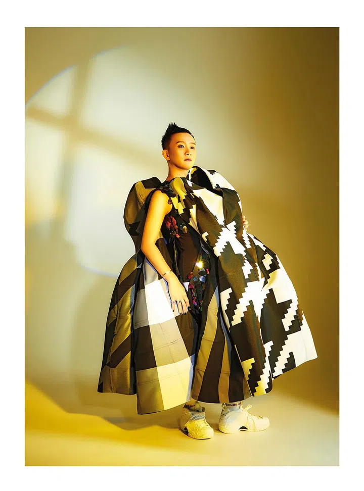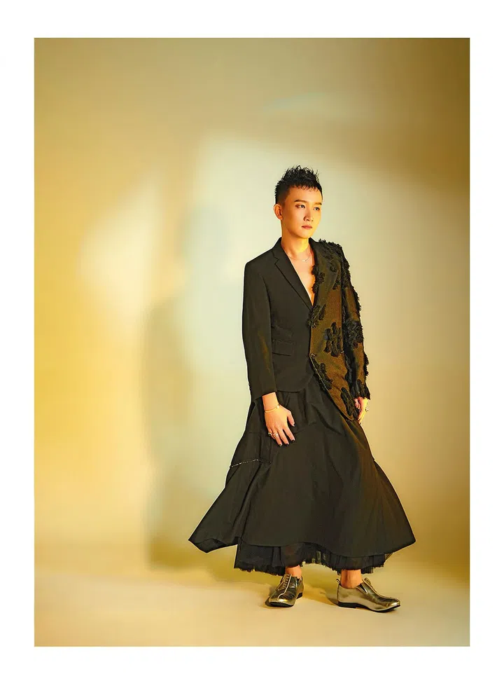 至今,詹锦祥已收藏30多件Comme des Garçons的秀场作品,横跨男女系列,另外还有接近200件成衣。他将其中十套秀场服装搬到摄影棚,一件件轮廓立体裁剪独特的服饰,十分精致且极具视觉感。他说,自己的收藏品主要以“异界的美丽”为主轴,“我喜欢那些能隐藏和混淆的作品,遮住了业界对身材标准的造型。我在想:一个人必须要具备对的身材部位才算是曲线美吗?若是非二元性別,或不相称的比例,又该如何?这些价值观形成了我收藏的重点和基础。”