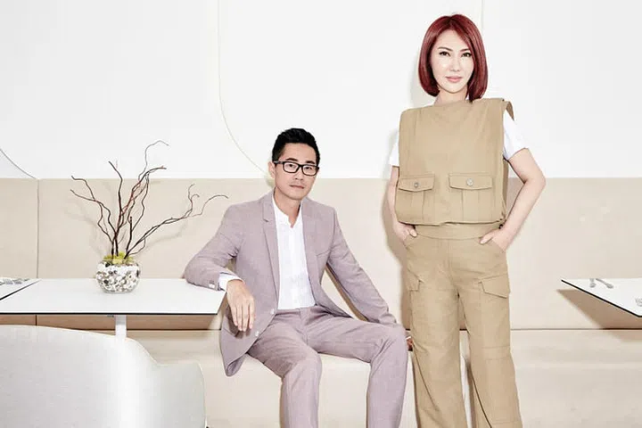 (Jessie Foo) 棉T恤、棉质混纺上衣、长裤/Salvatore Ferragamo。 (Jason Fong)棉质上衣、棉质混纺外套、长裤/HUGO。