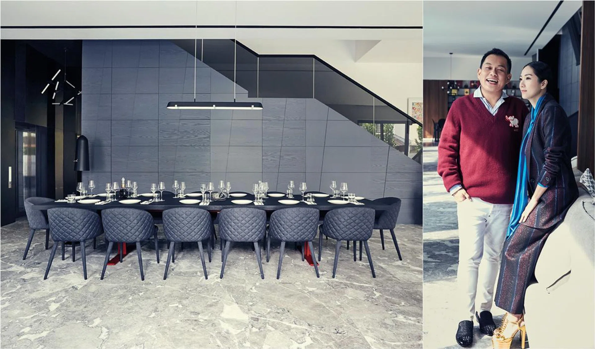 他表示,以前的居所跟他的个性一样,色彩丰富;新宅一改作风,换上了简约大气的黑白灰色为主调,搭配原木,多了一份沉稳。建筑呈长形格局,采开放式设计,入门即是会客厅,紧连饭厅、开放式厨房,加上一列落地窗引进自然光,明亮通透,非常舒畅。