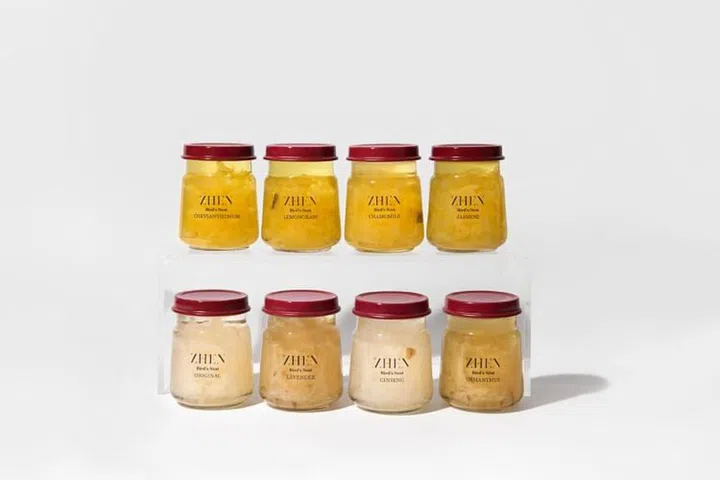 燕窝行业在过去几年发展迅速,消费者的习惯也随之改变,如今更多人选择即饮燕窝,而不是自己挑拣及炖煮。想要在众多燕窝品牌中脱颖而出,陈妍宁懂得将摩登元素注入传统风味,推出八种有趣的燕窝配方,适合各个年龄段享用,包括洋甘菊、菊花、桂花、人参、香茅、茉莉、薰衣草和冰糖。除外,还设计了具有现代感的瓶装燕窝包装, 希望顾客能重复使用。包装盒也是由可回收材料制成,和玻璃瓶均可回收。