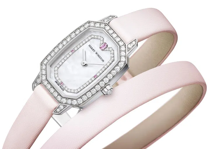 海瑞温斯顿(Harry Winston)则用全新Emerald系列腕表为女性缔造美丽公主梦。柔美的淡粉色表带与珍珠母贝表盘交相辉映,腕表镶嵌着四颗粉红刚玉和108颗圆形明亮式切割钻石,表壳装饰艺术风格的线条重现创始人Harry Winston钟爱的祖母绿形钻石切工,透露出高雅动人的当代女性风范。