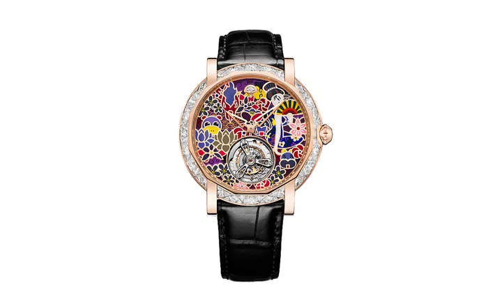 若是想看先进制表工艺与传统艺术的结合,那就不要错过格拉夫(Graff)精心打造的MasterGraff Ultra Flat陀飞轮腕表,纤薄的表壳结合了宝石镶嵌工艺、微绘工艺与珐琅工艺,从日本传统艺术中汲取灵感,分别以龙、日本武士和当代艺术大师村上隆的设计为图案,雕琢出无与伦比的奢华表盘。值得一提的是,村上隆设计的图案是采用格拉夫独家的“emaille a froid”工艺绘制而成。在如此精妙绝伦的表盘上,6点钟位置的陀飞轮更是锦上添花,展现腕表超凡魅力。