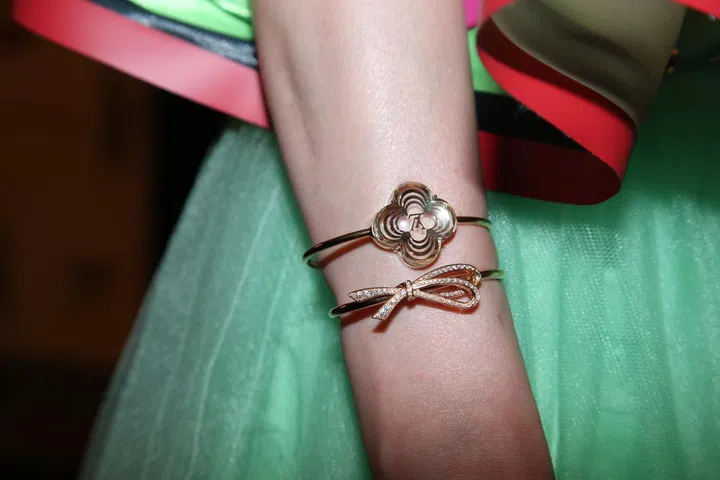Loh May Han佩戴的Louis Vuitton手镯,四叶草和蝴蝶结都特别小巧别致。