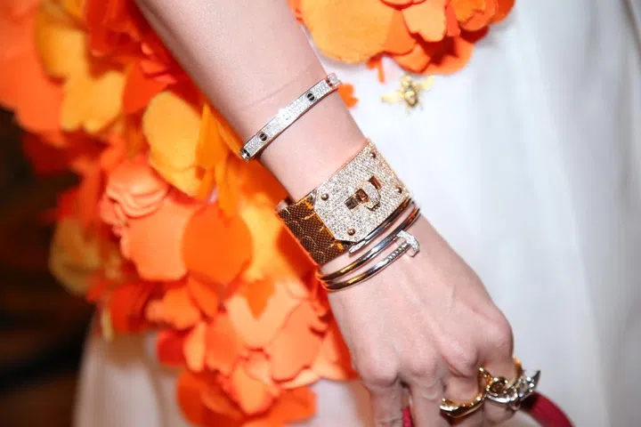Fanty Soenardy将Cartier和Hermes的手镯混搭起来显得更加时尚。