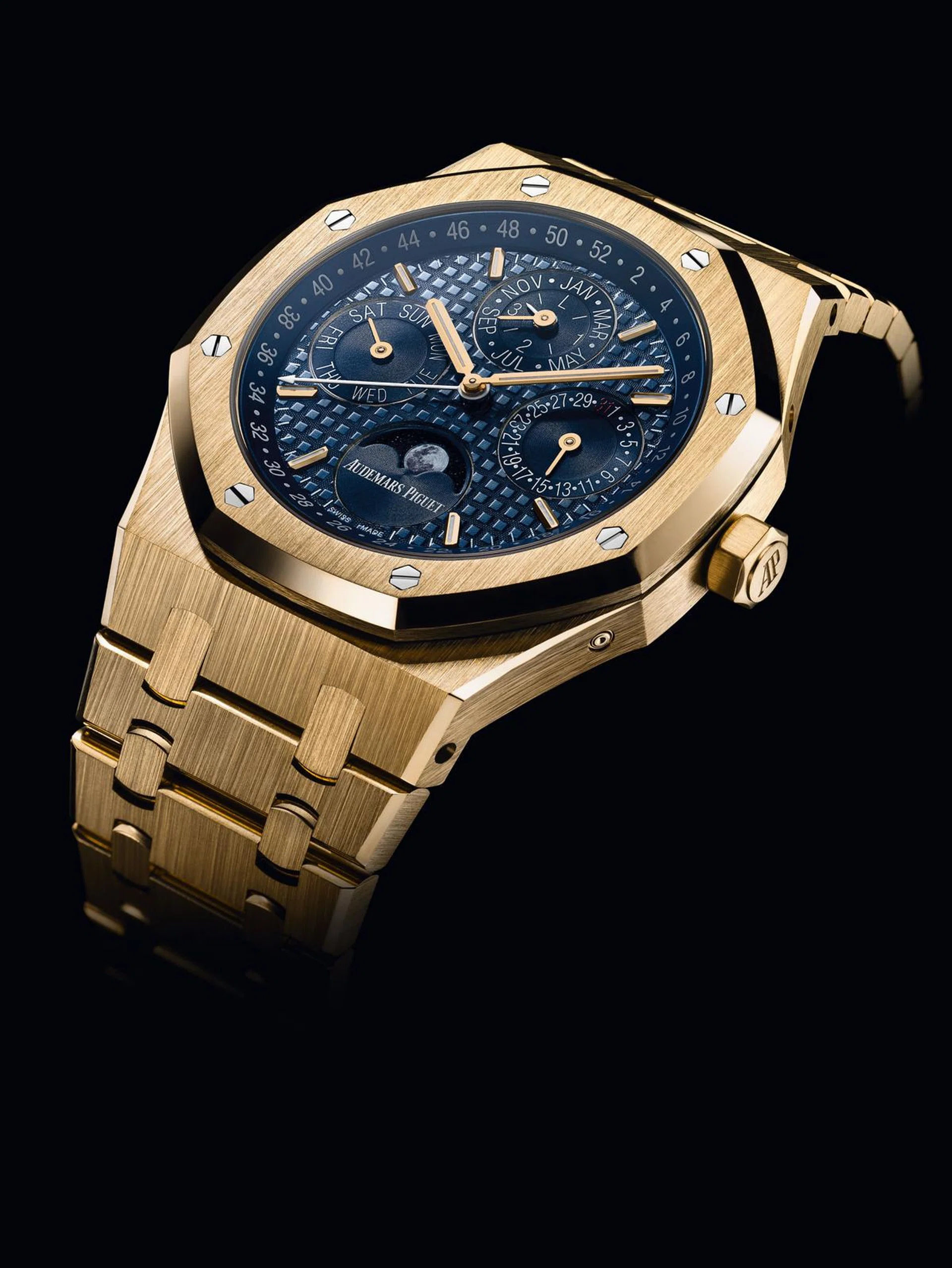 精表珠宝SIHH 2016 Report: Gold watches from Audemars Piguet, Piaget, and more 直击日内瓦钟表展:金色回潮我们直击日内瓦国际高级钟表展现场,带你领略本次的表展盛况。今天,先谈谈金色腕表,作为今年奢华腕表界的大趋势之一,给我们的提示是:学会高调示人才是王道。文 / 余婉瑜 / 19 Jan 2016audemars piguet, piagetShare this article金色大战穿戴腕表,高调一些又何妨?宛如阳光般温润的璀璨金色,将让佩戴者腕间闪耀着光芒。作为最先为女性设计腕表的品牌之一,Piaget在金质女装腕表方面也是佼佼者。至今已推出45种各式金质链带腕表,今次再带来佳作。Limelight Gala系列的新成员,以出于70年代的经典Limelight Gala设计为基础,附上玫瑰金装,搭配的米兰网织链带(Milanese mesh strap),让设计服贴着女人手腕间,制造出柔美曲线。链带与表壳浑然一体,两条不对称的表耳沿着圆形表壳延伸开来,钻石尤其凸显金质的温润,呈现优雅 动人之作。去年,Audemars Piguet与钟表商The Hour Glass 合作推出了限量版黄金腕表Royal Oak Extra Thin 15202。那是品牌继70年代后,首次推出黄金腕表。乘胜追击,2016年的最新Royal Oak万年历腕表,同样披上了黄金衣裳,以1984年第一只由Jacqueline Dimier设计的万年历腕表为设计灵感。当年,在推出的279只万年历腕表之中,229只以黄金版本华丽登场。除了搭载周历、星期、日期、精确月相、月份、小时与分钟等显示功能,腕表还配上全新 以经典Calibre 2120机芯为基础的Calibre 5134自动上链机芯,为配合41毫米表壳,机芯尺寸相应加大。透过玻璃表底,可一览厚度仅有4.31毫米的纤薄机芯。 黄金雕刻艺术看似刺绣,其实是黄金雕刻的表盘艺术。这是Parmigiani今年呈现的三问腕表Toric Quaestor Grove,以黑色珍珠贝母表盘作为微型画布,手工雕刻出松树的枝干,让复杂与柔美同在一只腕表。audemars piguet, piagetShare this article