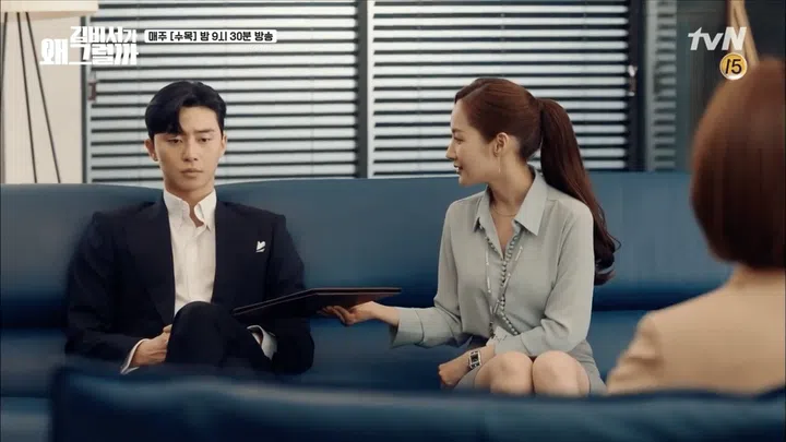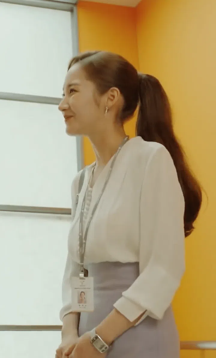 在第8集中,金秘书又佩戴着这款Cape Cod上班了,此次她选择搭配的是乳白色丝质衬衫与紫灰色短裙,比起上次比较精明干练的装扮,这次添了几分温柔,但是手腕上的爱马仕Cape Cod依旧与整体装扮非常相配。