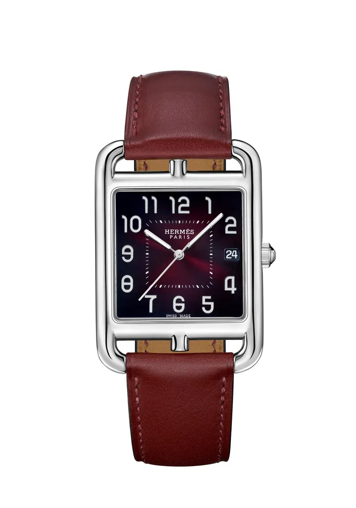 试问有哪个女人不爱红色?这款深红色Cape Cod,漆面表盘反射红色光晕,渐变的色调令表盘色彩层次愈加丰富,搭配爱马仕红小牛皮表带,一只腕表便能体现复杂女人心。