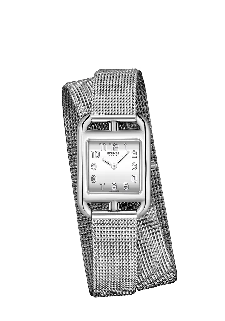 如果你还不知道什么是Cape Cod,那真的就太out了。诞生于1991年的Cape Cod源于Heri d' Origny不拘一格的大胆设计。起初,Henri应邀设计一款正方形腕表,但他却偏爱长方形设计。一个大胆的想法由此萌发,何不将爱马仕的标志性设计“锚链”一分为二?Henri将这两种形状进行了大胆的混搭组合。Cape Cod系列腕表,正方形表盘嵌于长方形边框中,双圈表带设计更显风采,赋予此款腕表独特的前卫感觉。永恒的盎然趣味,别具一格,也让它成为爱马仕最受欢迎的腕表系列。