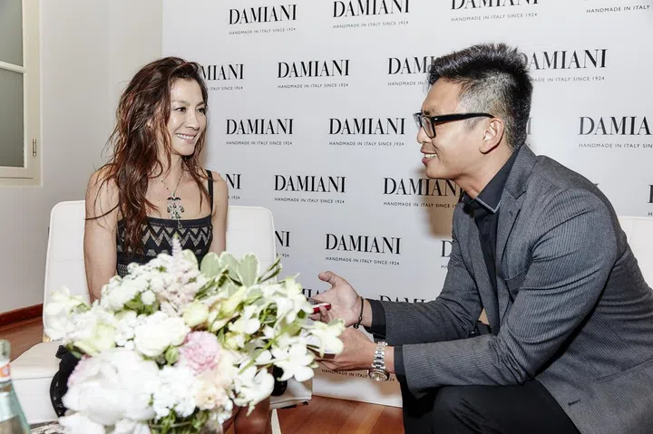 精表珠宝Award winning actress Michelle Yeoh special guest appearance at Damiani's Gala Dinner意大利著名珠宝品牌Damiani在The Arts House举办了一场独家晚宴。当晚的特别嘉宾是亚洲巨星杨紫琼。城中的70位珠宝爱好者特别受邀出席。文 / Marketing / 2 Jun 2016damiani, Michelle YeohShare this article意大利著名珠宝品牌Damiani在The Arts House举办了一场独家晚宴。当晚的特别嘉宾是亚洲巨星杨紫琼。城中的70位珠宝爱好者特别受邀出席。晚宴上展示了品牌的多件系列珠宝,同时通过展览展示了品牌在珠宝质量上追求的10 C法则,除了判断钻石的品质靠4 C外,多出来的六个C包括:Craftsmanship ,Custom made Certificate 、Coverage、Company,以及最让客户叫好的Change option guarantee独家服务。Michelle Yeo1/15Jane Heng & Evelyn Sam2/15Ernesto Miraglia & Fanty Soenardy3/15Grace Chong Tan & Ernest Rex Tan4/15Ju Lynn Yeoh5/15Elsie Yah, Joyz Chan, Casling Tan & Fanty Soenardy6/15Sherry Lim7/15Marianne Liow & Michelle Yeoh8/15Sylvester Ng, Calvin Chan & Lock Ching Yuen9/15Melisa Teo10/15Sylvester Ng, Editor of ICON, speaking to Michelle Yeoh11/15Adrian Ng, Loh May Han & Elsie Yah12/15Wendy Jacobs, Sherry Lim, Ju Lynn Yeoh, Anthony Khoo, Cindy Chua & Derick Beh13/15Indge Widjaja, Silvia Kosasih, Vonni Triana & Endang Juliaiti14/15Yeo Mui Hong & Elsie Yah15/15damiani, Michelle YeohShare this article