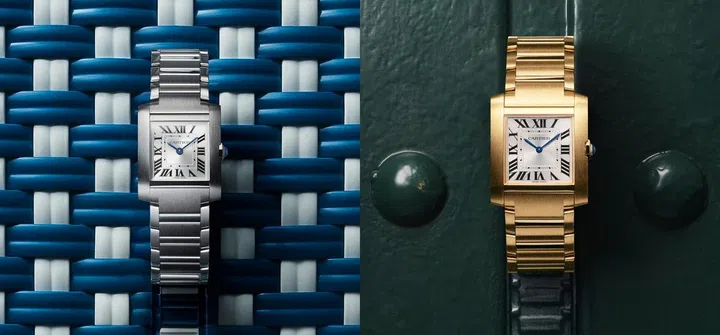 卡地亚(Cartier)今年为Tank Française腕表进行的改款,基本上完全继承1996年的原始设计,仅在细节上进行微小的调整,使外型显得更加现代。整个系列备有精钢、黄金和黄金镶钻表款,情侣可以依据自己手腕的大小佩戴不同尺寸款式,或男女分别佩戴无钻和镶钻款式。