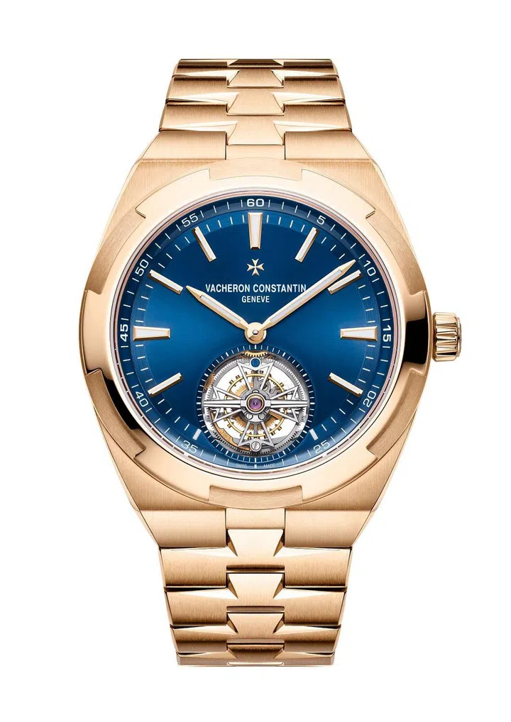 瑞士高级钟表品牌江诗丹顿2021年的新品OVERSEAS TOURBILLON陀飞轮腕表款,闪耀的金表沉稳霸气,更添一丝儒雅绅士气息。采用18K 5N 粉红金打造 表壳,搭配深邃的蓝漆缎面表盘、镶有30颗宝石与80小时动力储存的自家 2160 机芯,同时额外配备橡胶及 Mississippiensis 鳄鱼皮革表带,让使用者随心所欲替换表带,满足不同场合的佩戴需求。