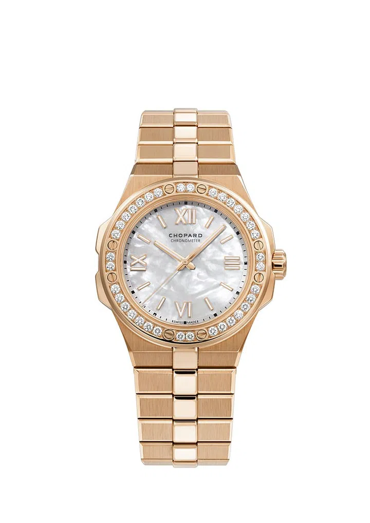 瑞士高级腕表品牌萧邦去年为Alpine Eagle系列腕表增添新生力军。36毫米的小型款女士腕表,配置自动上链机芯09.01-C,并以公平采矿认证的18K玫瑰金镶钻表壳,搭配珍珠母贝表盘,在手腕间流露温柔婉约气质,把金表做得如此高雅清丽,谁还会说金表太俗气?