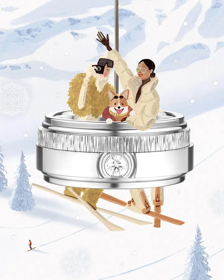 坐上满载欢愉的缆车,登顶欢乐雪山,遍布视野的雾凇美景一览无余。 伯爵(Piaget)Possession时来运转系列白金戒指,镶嵌明亮式切割钻石,轻盈转动,开启律动趣味时刻。