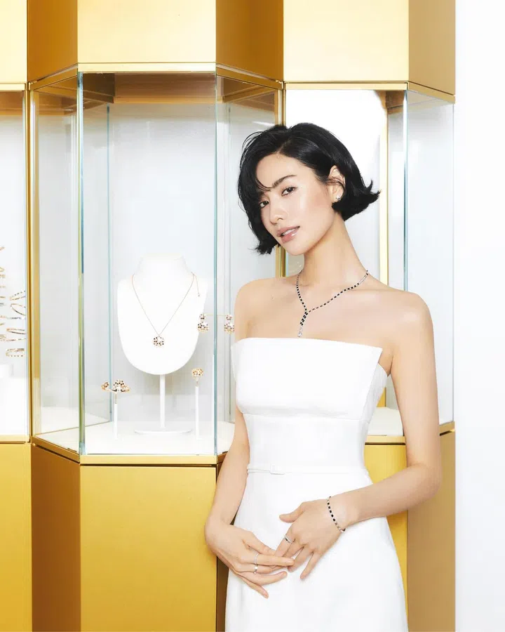 韩国艺人李主傧(Lee Joo Been)佩戴尚美巴黎(Chaumet)Bee My Love系列项链、耳环、手镯及戒指,释放摩登魅力。