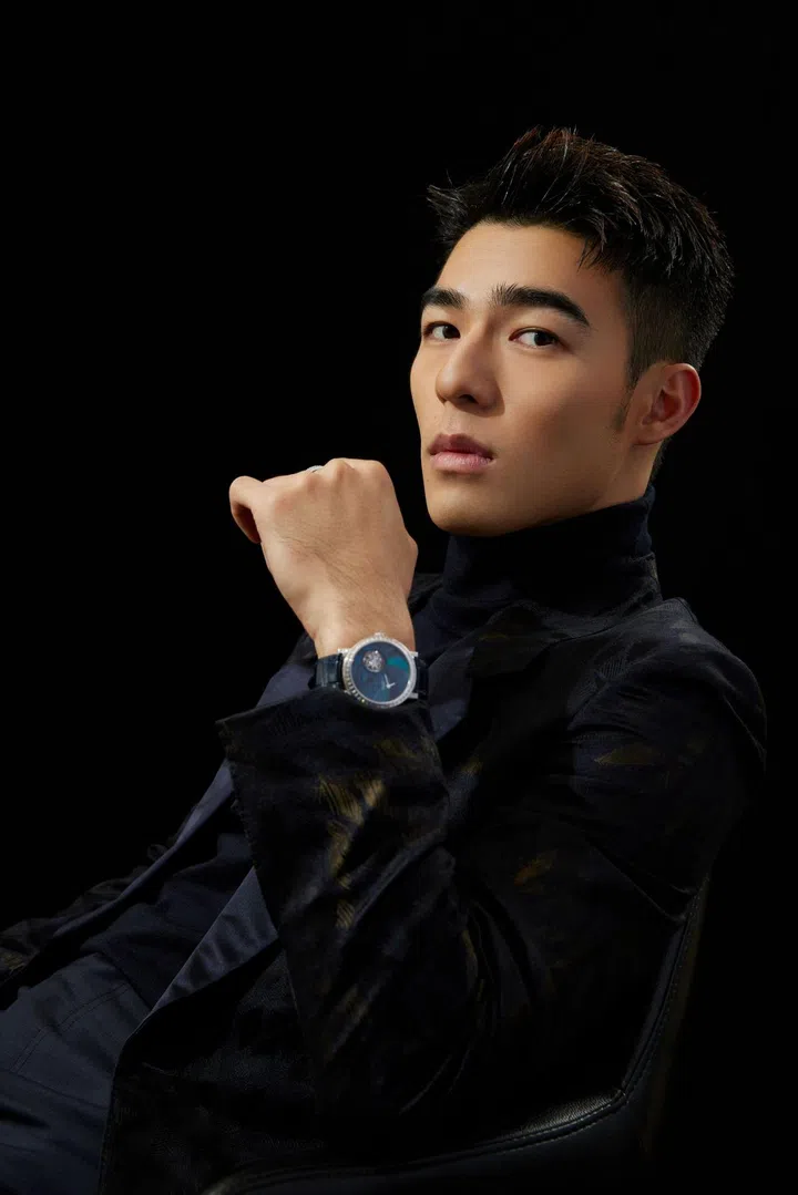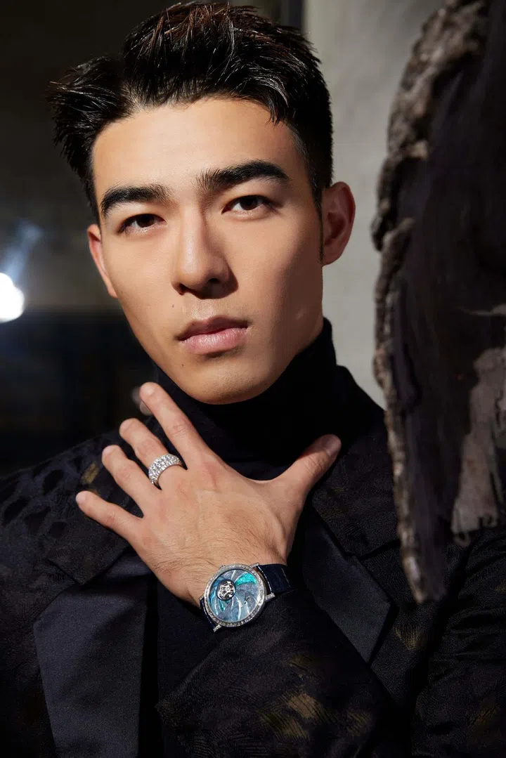 身为伯爵(Piaget)品牌大使的陈昊森佩戴Extraordinary Lights 系列〈星空之舞〉超薄陀飞轮腕表高级珠宝工艺腕表以及Possession系列18K白金钻石手镯现身金马奖。工匠师运用细工镶嵌工艺,将蓝色麦秆、羊皮纸、皮革、角木和鞘翅等珍贵素材镶嵌于〈星空之舞〉超薄陀飞轮腕表的表盘上。