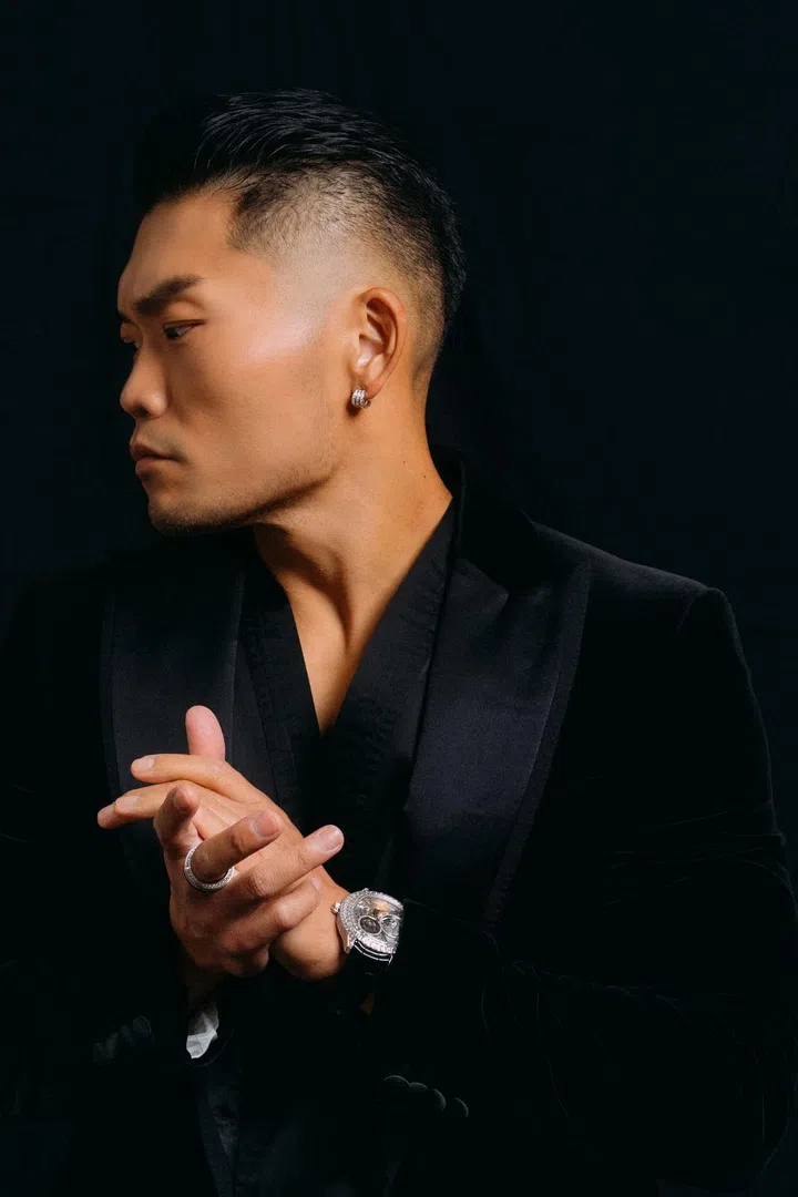 担任颁奖嘉宾的陈柏霖以爱彼(Audemars Piguet)Royal Oak皇家橡树50周年纪念款腕表搭配一身Ralph Lauren蓝色丝绒西装。