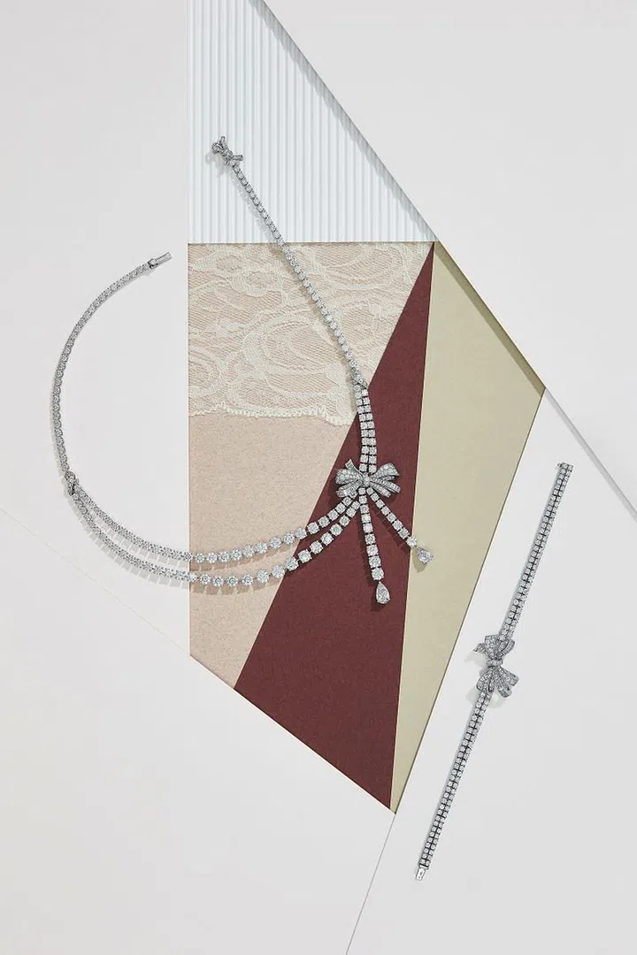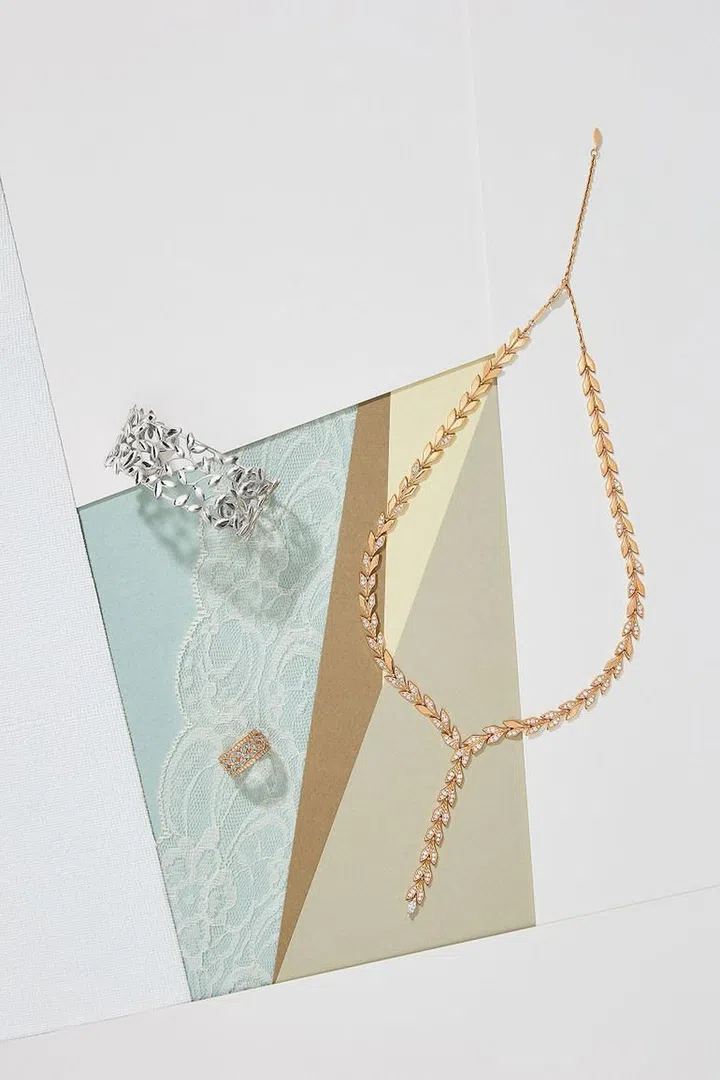 精表珠宝浪漫婚嫁珠宝用精美绝伦的珠宝诠释爱的珍贵与浪漫,见证一对新人永恒不变的爱情誓言。文 / 张思嘉 / 20 Jun 2022Bridal Jewellery, icon wedding, ICON Weddings, jewellery, WeddingShare this articleArt Direction: Eric ChoonPhotography: Phyllicia Wong1/9Lucky N°5粉红蓝宝石手镯、项链及戒指/Chanel。2/9Sunflower系列铂金镶钻项链、戒指及耳环/Harry Winston。3/9Laurier系列玫瑰金镶钻吊坠及戒指/Chaumet。4/9白金镶嵌红宝石和钻石高级珠宝项链; 铂金镶钻高级珠宝耳环; 1895系列铂金镶钻婚戒/Cartier。5/9Tiffany Victoria系列玫瑰金钻石戒指及玫瑰金镶钻藤蔓垂坠项链; Paloma Picasso系列Olive Leaf开口手镯/Tiffany & Co.。6/9蓝宝石和钻石高级珠宝项链; 方形祖母绿切割钻石戒指; Green Carpet系列钻石戒指/Chopard。7/9Eventails铂金镶钻戒指; Saidapur铂金镶嵌枕形切割红宝石和钻石戒指; Icone铂金镶钻戒指; Snowflake铂金镶钻耳环/Van Cleef & Arpels。8/9Tilda’s Bow系列多形切割钻石项链、耳环及手链/Graff。9/9Serpenti系列白金镶嵌钻石和祖母绿高级珠宝项链; Fiorever系列白金镶钻高级珠宝戒指/Bvlgari。Bridal Jewellery, icon wedding, ICON Weddings, jewellery, WeddingShare this article