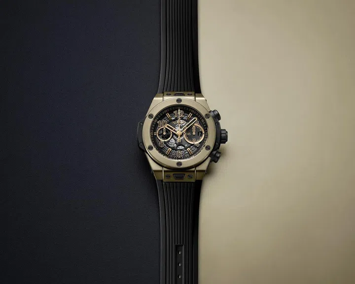 宇舶表(Hublot)回归本源,推出Big Bang Unico全魔力金腕表,凭借天马行空、引人注目的设计展现制表精粹。这款腕表保留了Big Bang系列极具辨识度的特征:标志性44毫米表壳、“三明治”结构、特大按钮和饰有六颗螺丝的表圈,共同塑造出强有力而颠覆性的美感。镂空表盘搭配阿拉伯数字和Big Bang指针,揭示内置UNICO 2 HUB 1280自动上弦计时机芯的精密机制。魔力金(Magic Gold)是宇舶表开发的独家合金,在这款限量200枚的腕表中扮演了重要角色。魔力金表壳和表圈与拉丝和微喷砂3N金时标、副表盘和指针形成鲜明对比,钛金属按钮、防护装置、螺丝和橡胶表带则以黑色装饰。